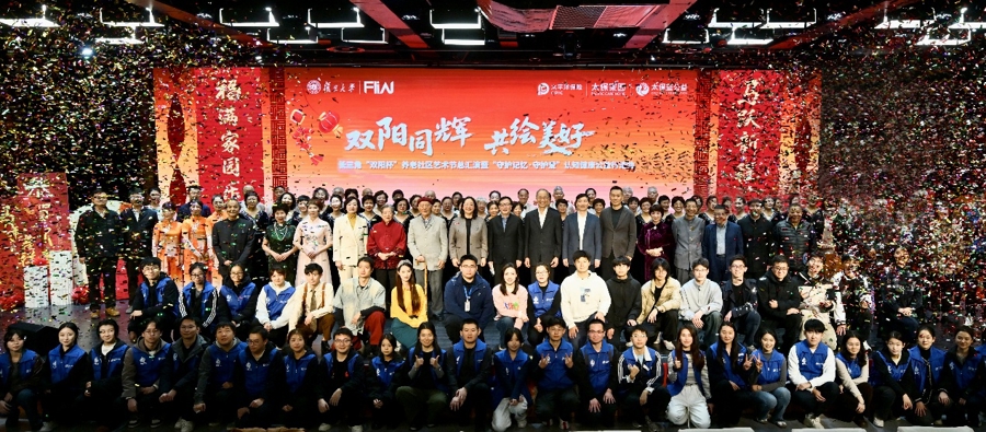 伴随着复旦大学龙狮协会激昂澎湃的《圣火中国》表演,以“双阳同辉·共绘美好”为主题的总汇演拉开帷幕,分为“红心永向·致敬年华”与“同心共聚·岁月常乐”两大篇章。上海老年大学金庭分校带来歌舞《爬雪山过草地》,深情回顾红色岁月;南京大学银发艺术团在抗战胜利80周年之际,献上诗朗诵《不朽》,表达深切的缅怀与敬意;著名笙演奏家、国家一级演员翁镇发及其团队奏响《晋调》,与孝文江南丝竹乐团演绎的《欢乐歌》交相辉映,共同展现中华传统乐器的深邃魅力;一心·太保蓝公益呈现诗乐舞《春江花月夜》,苏州太保家园长者表演京剧《贵妃醉酒》选段,彰显文化传承的生生不息;南京大学银发艺术团带来的《我们的田野》,生动传递出长者特有的活力与风采。最后,演出在复旦大学校友会离退休校友合唱团气势恢宏的大合唱《党啊!亲爱的妈妈》《爱情树》等经典旋律中落下帷幕。